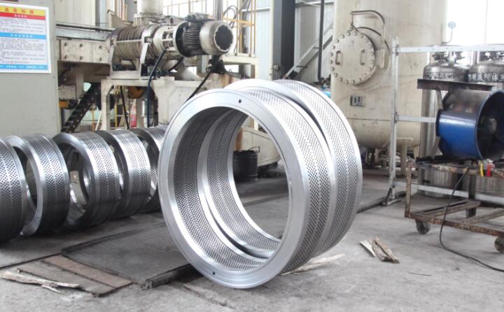 这是木屑颗?;?,专门用来生产生物质颗粒的,这东西结实吗?给我再买回去用不了几天。来来来,你看一下,你看看这环模用的都是优质不锈钢,都是经过了真空热处理,质量杠杠的。