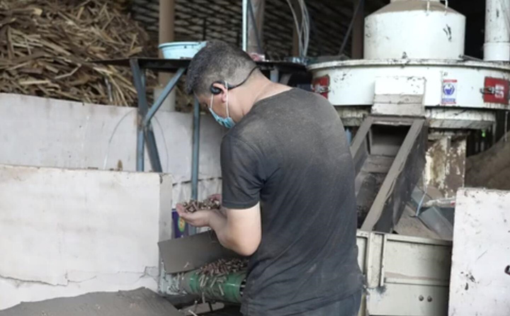 “小颗?!钡闳肌爸赂幻巍?/p> 在甘肃省华亭市西华镇西塬村生物质燃烧颗粒生产车间,看着木屑颗?;鳌俺越庇衩仔?、树皮、木材边角料,“吐出”一个个圆柱体的燃料颗粒,村民杨涛赞不绝口,“既解决了房前屋后的废弃材质,还解决了冬季取暖燃料,一举两得。”