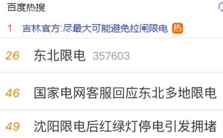 ?近日,“东北限电”的话题在社交媒体上引发关注。据媒体报道,从9月23日开始,东北多地出现了用电高峰时段拉闸限电的情况,沈阳市、长春市等地均执行了限电。国网吉林省电力有限公司---“先错峰,再避峰,再限电”。