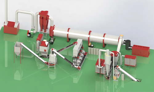 原料水分在30%-40%之间,需要配备滚筒烘干机,时产5-7吨木屑颗粒的烘干筒尺寸为2m*18m;
