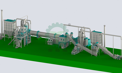 原料水分在30%-40%之间,需配备滚筒烘干机,时产1-2t木材颗粒的烘干筒尺寸为1.2m*12m